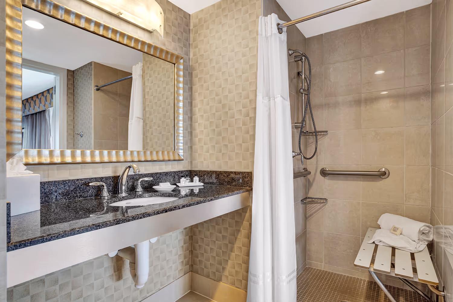 Our accommodations provide a friendly and comfortable environment for everyone to enjoy. We offer guestrooms with accessibility in mind for comfort and convenience. ADA Accessible rooms are handicap accessible with a variety of accessibility features including bathrooms with grab-bars and roll-in showers, full length mirrors and ADA door with peephole at mid level.